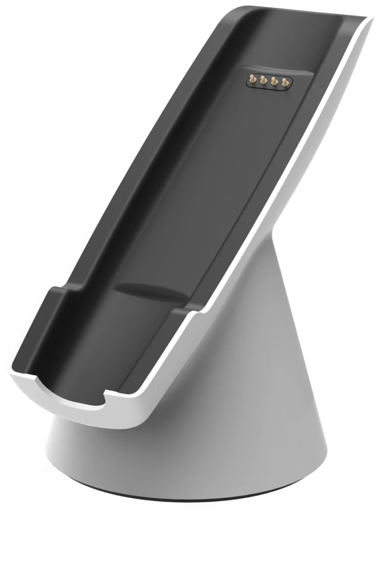 Reinigen Sie den zu behandelnden Bereich zuerst manuell. Entnehmen Sie dann das Handgerät aus der Ladeschale und bringen Sie einen sterilen Abstandhalter an. Durch einfachen Tastendruck können Sie die Anwendungsdauer auf 1 Minute oder 2 Minuten einstellen.